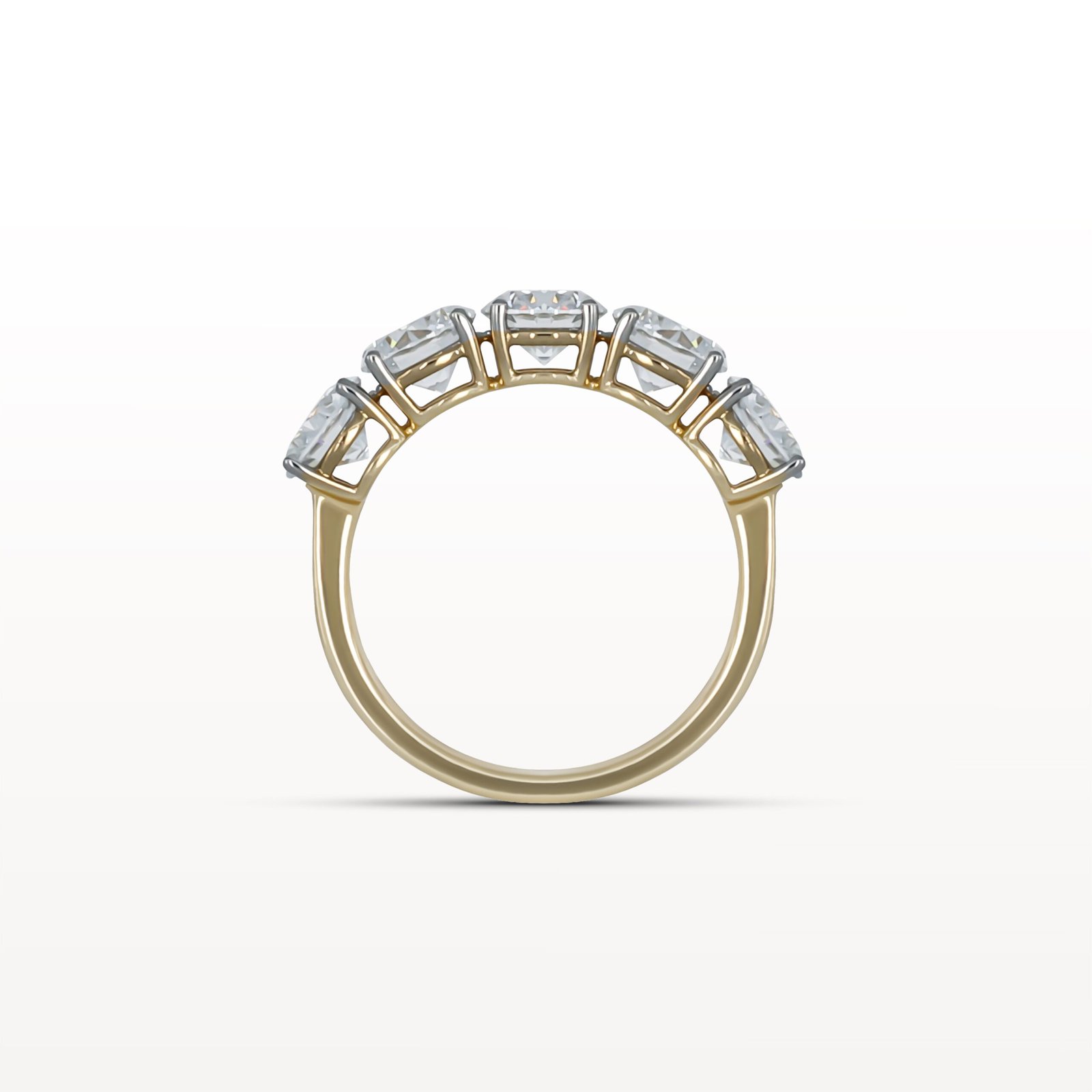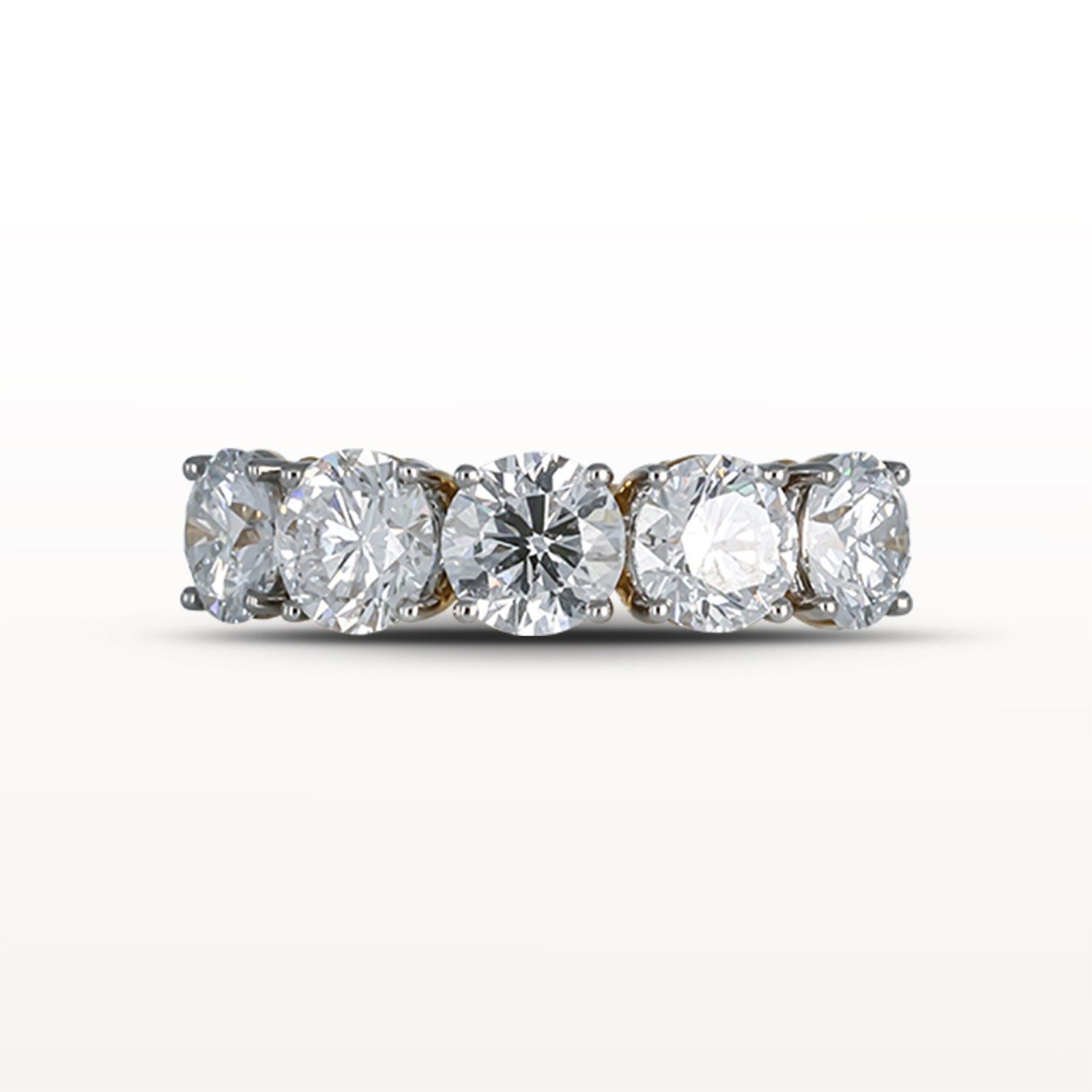 Crafted in 18kt gold, this elegant five-stone ring features round brilliant lab-grown diamonds that radiate timeless beauty and sophistication. Each diamond is set to capture maximum brilliance, creating a harmonious flow of light across the band. Perfect for celebrating milestones, symbolizing everlasting love, or elevating everyday style, this ring blends modern innovation with classic luxury, offering a sustainable yet dazzling choice for those who appreciate fine craftsmanship and refined elegance.